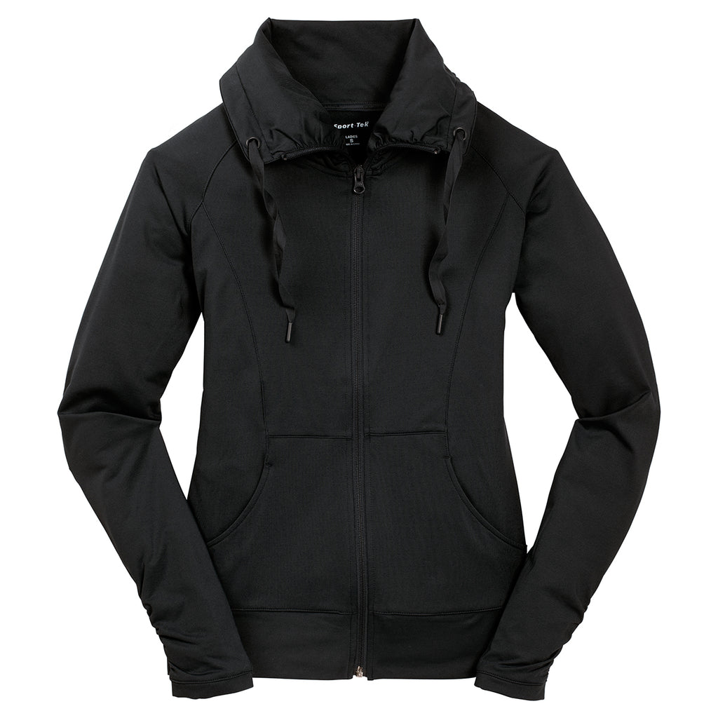 Just because it's jacket weather doesn't mean you have to bundle up to the nines. Enter the Sport-Tek Women's Black Sport-Wick Stretch Full-Zip Jacket. This jacket is light, and we do mean light: the 6.8-ounce, 90/10 poly/spandex fabric is lighter than many pullovers. In fact, this jacket goes so far as to offer a tag-free label and a zip-through cowl collar to offer the most insulation possible in a light jacket. With the ruching at the cuffs, the self-fabric hem, and the raglan sleeves, you'll look as stylish as ever even while feeling so comfortable you may just forget you have a jacket on in the first place. All that remains? Your company's logo embroidered on the front to turn this into a sleek piece of workwear.
