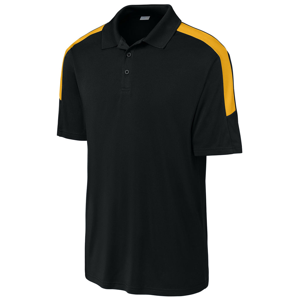 Sport-Tek Men's Black/ Gold Competitor United Polo with a custom logo is a great way to outfit or support your team. The lightweight polo with a complementary stripe on the shoulders and partial sleeve offers a UPF rating of 30+ and is moisture-wicking for all-around performance. Outfit your entire team on a budget.Corresponding Women's Style: Sport-Tek Women's Black/ Gold Competitor United Polo