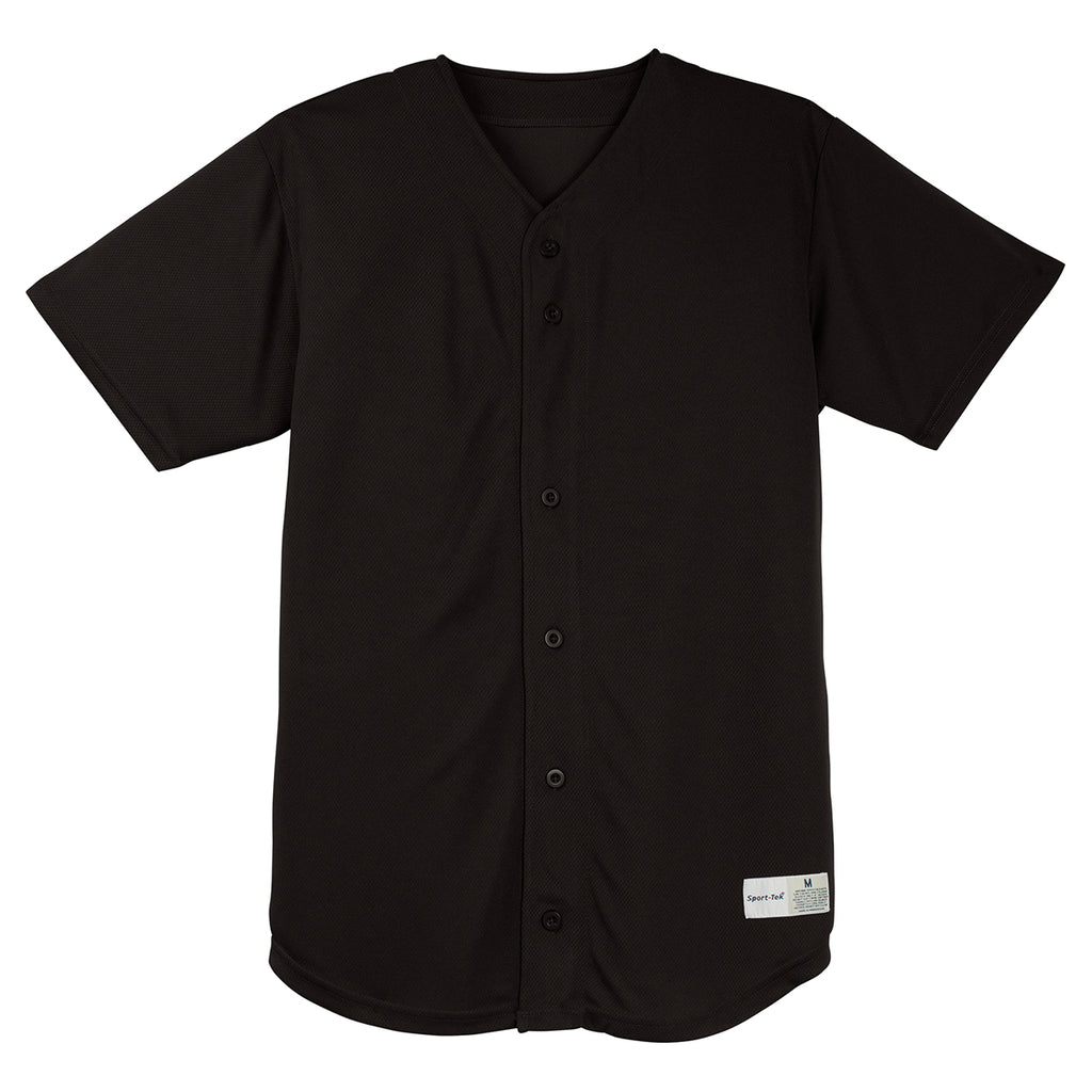 There is a 12 piece minimum on all orders for Sport-Tek t-shirts. This item will be imprinted, not embroidered.This Sport-Tek Men's Black PosiCharge Tough Mesh Full-Button Jersey is an astute choice. But jerseys aren't all about the clothing on your backodd as it might sound to saybecause they can also help your company create some corporate apparel that people will love. And hey - they might even form a sports team!