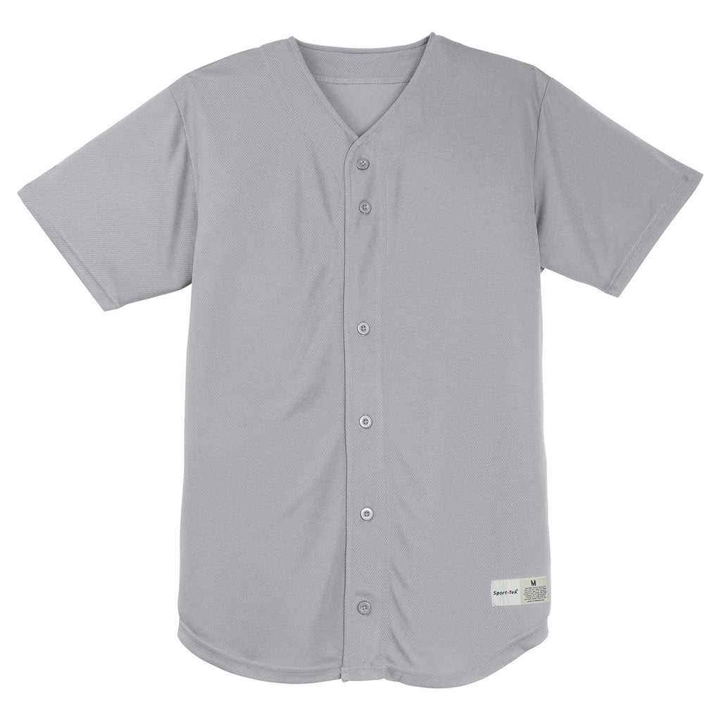 There is a 12 piece minimum on all orders for Sport-Tek t-shirts. This item will be imprinted, not embroidered.This Sport-Tek Men's Silver PosiCharge Tough Mesh Full-Button Jersey is an astute choice. But jerseys aren't all about the clothing on your backodd as it might sound to saybecause they can also help your company create some corporate apparel that people will love. And hey - they might even form a sports team!