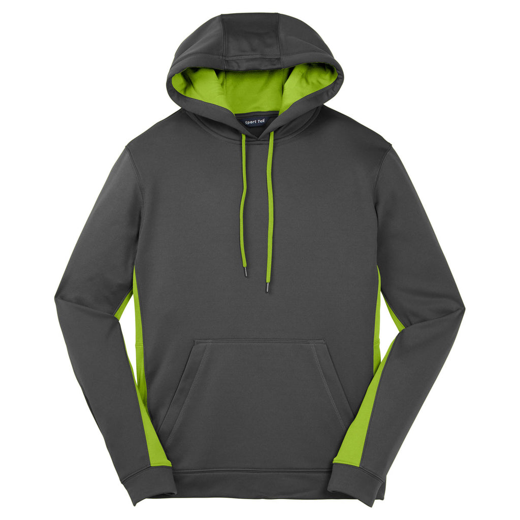 Sport-Tek Men's Dark Smoke Grey/ Lime Shock Sport-Wick Fleece Colorblock Hooded Pullover