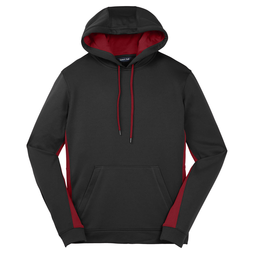 Corresponding Women's Style:Sport-Tek Women's Black/Deep Red Sport-Wick Fleece Colorblock Hooded Pullover