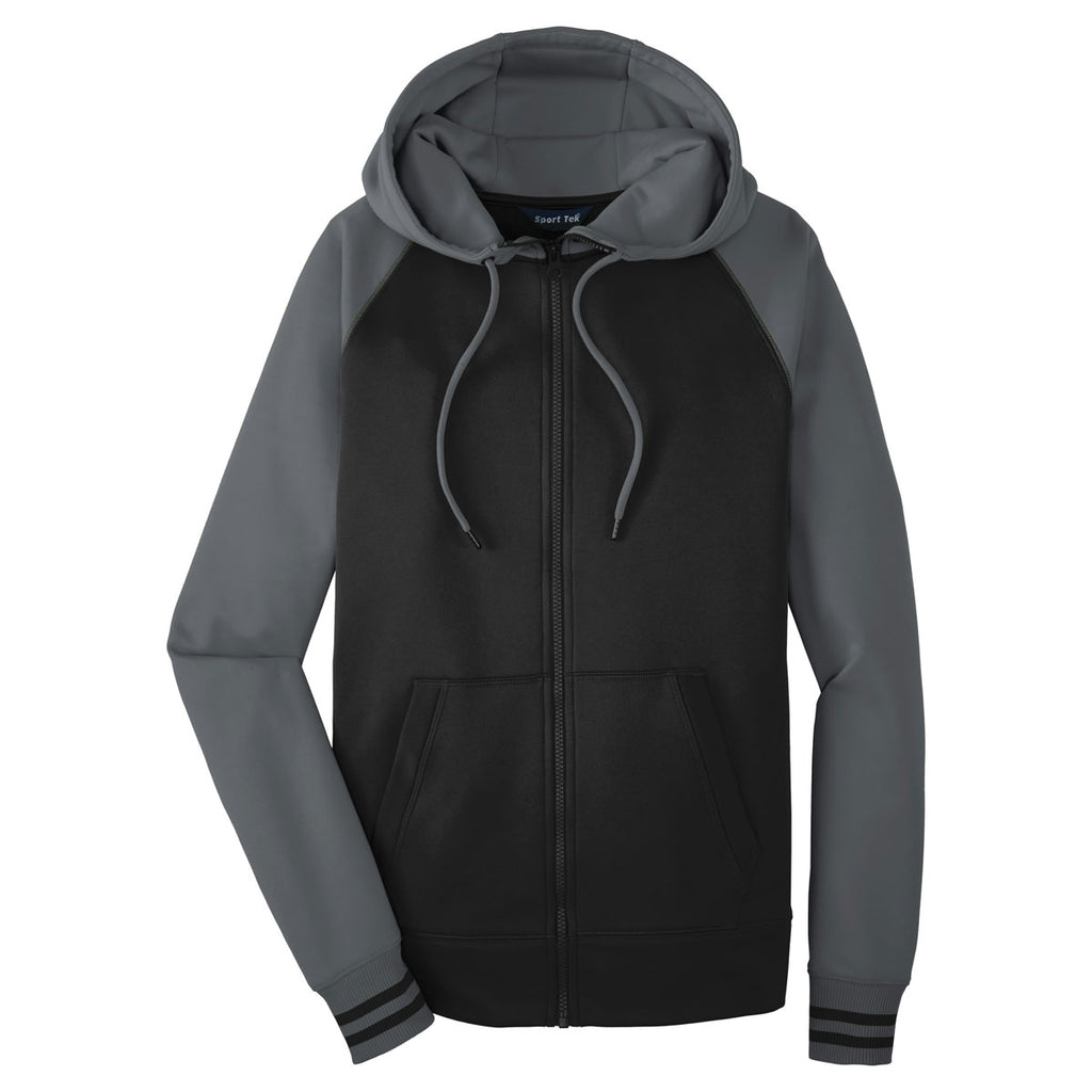 Corresponding Women's Style:Sport-Tek Women's Black/Dark Smoke Grey Sport-Wick Varsity Fleece Full-Zip Hooded Jacket