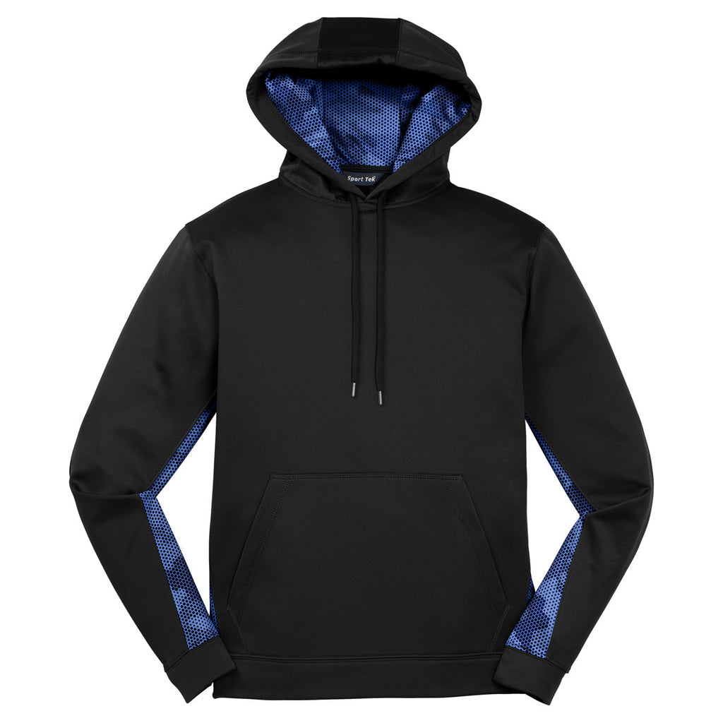 Sport-Tek Men's Black/ True Royal Sport-Wick CamoHex Fleece Colorblock Hooded Pullover