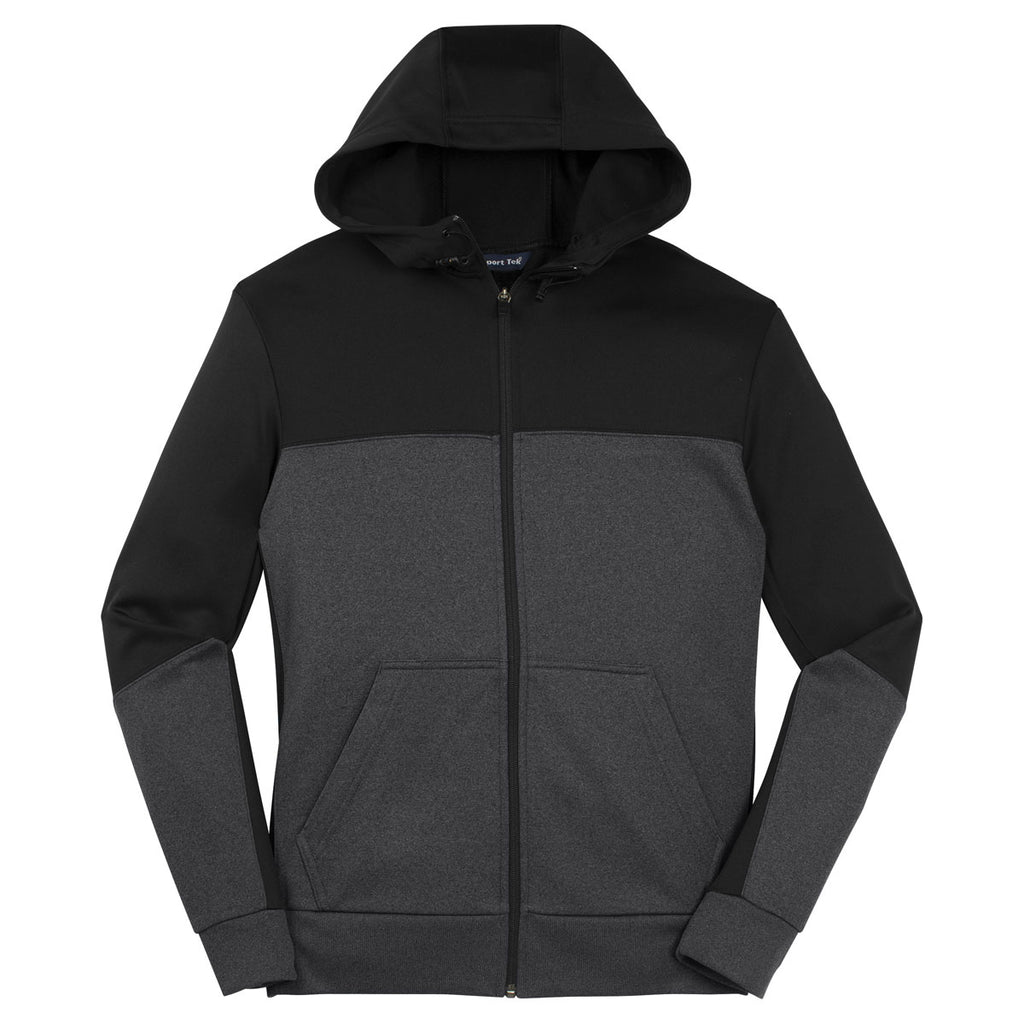 Sport-Tek Men's Black/ Graphite Heather/ Black Tech Fleece Colorblock Full-Zip Hooded Jacket