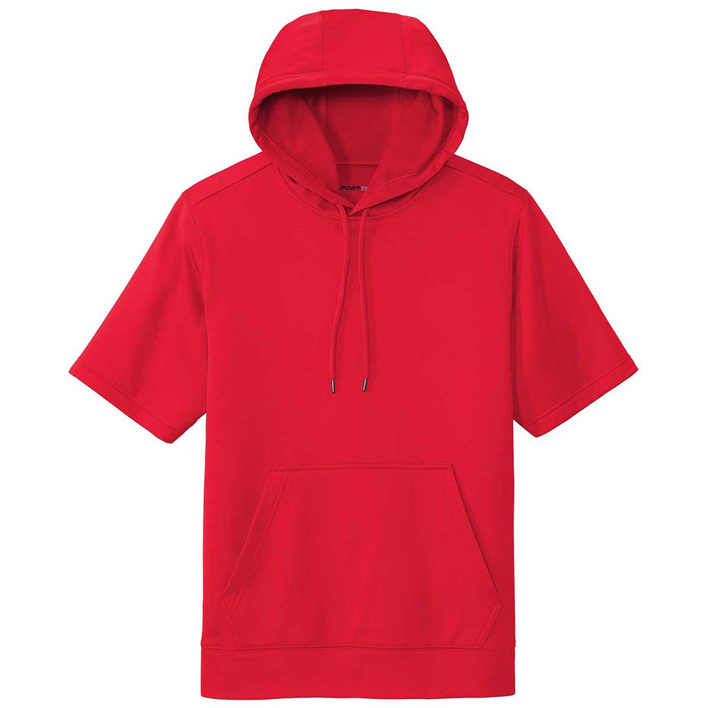 Hoodies are highly versatile and the custom Sport-Tek Men's Deep Red Sport-Wick Fleece Short Sleeve Pullover Hoodie is no exception. Made of 100% polyester, this anti-static hoodie is made for layering whether you are playing a quick game of hoops or headed to the gym for hours of exercise. Add a custom heat transfer logo of your choosing to create a unique look. Perfect as a company uniform for those who work in the health and wellness arenas, this hoodie can carry a company logo with pride. The three panel hood has drawstrings for comfort and a front pouch to keep items safe.Highlights