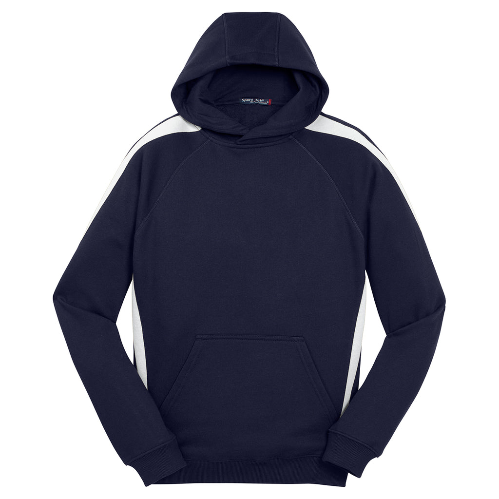 Sport-Tek Men's True Navy/ White Sleeve Stripe Pullover Hooded Sweatshirt