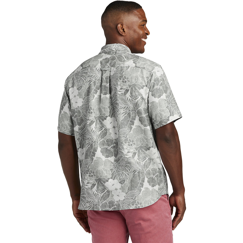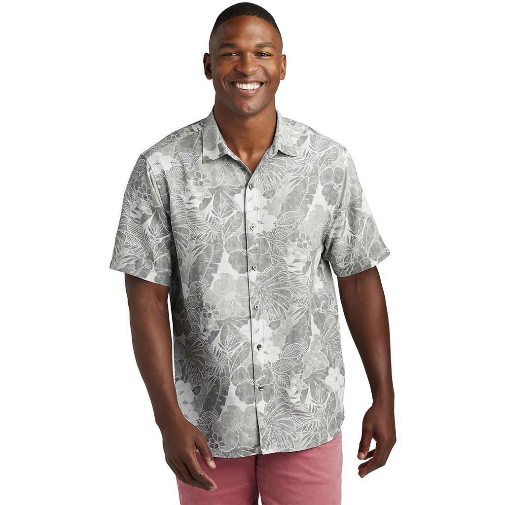 If your brand has a bold, refreshing point of view, your company's custom logo will feel right at home on the Tommy Bahama Men's Light Grey Coconut Point Playa Flora Short Sleeve Shirt. Along with a contemporary tropical pattern, this short-sleeved button-down features a silky-smooth fabric that will keep your team cool and comfortable.