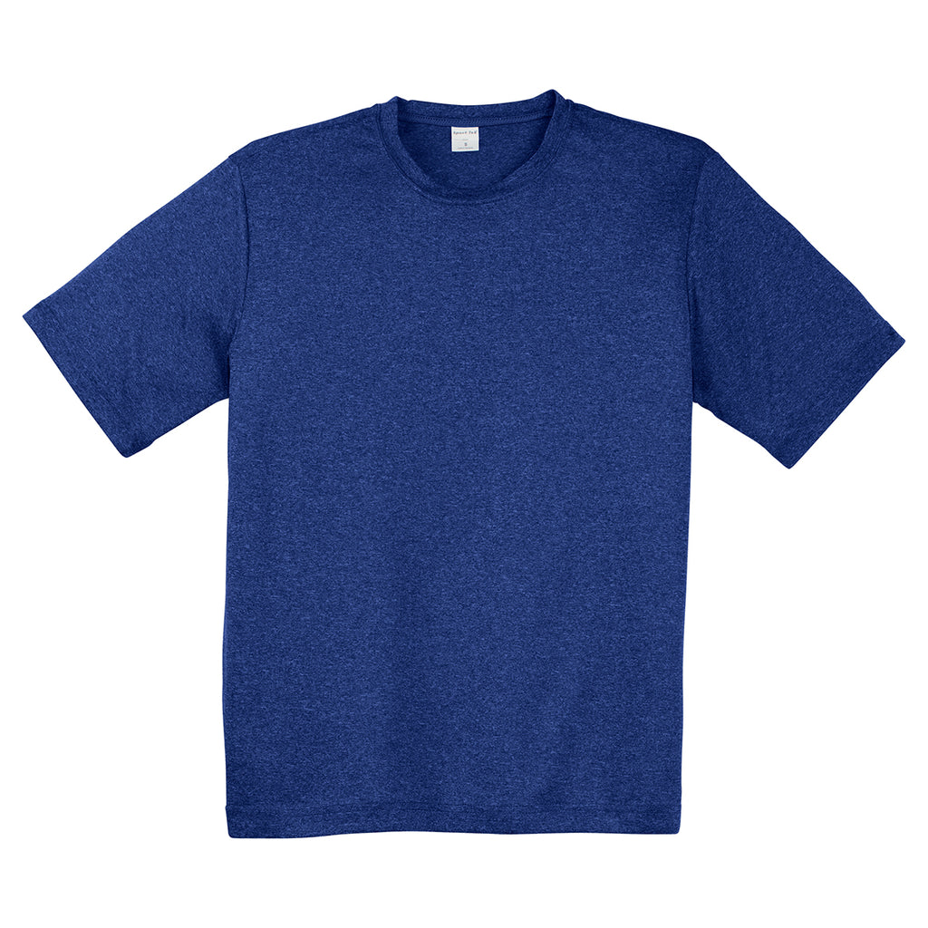 There is a 12 piece minimum on all orders for Sport-Tek t-shirts. This item will be imprinted, not embroidered.Is there anyone who doesn't like a good T-shirt? If so, we haven't met them. This Sport-Tek Men's Cobalt Heather Contender Tee is an especially astute choice. But T-shirts aren't all about the clothing on your backodd as it might sound to saybecause they can also help your company create some corporate apparel that people will love. By giving them to employees or as giveaways, you can use them to promote your brand and spread the word about specific events. Or you can wear them. That's fine too.