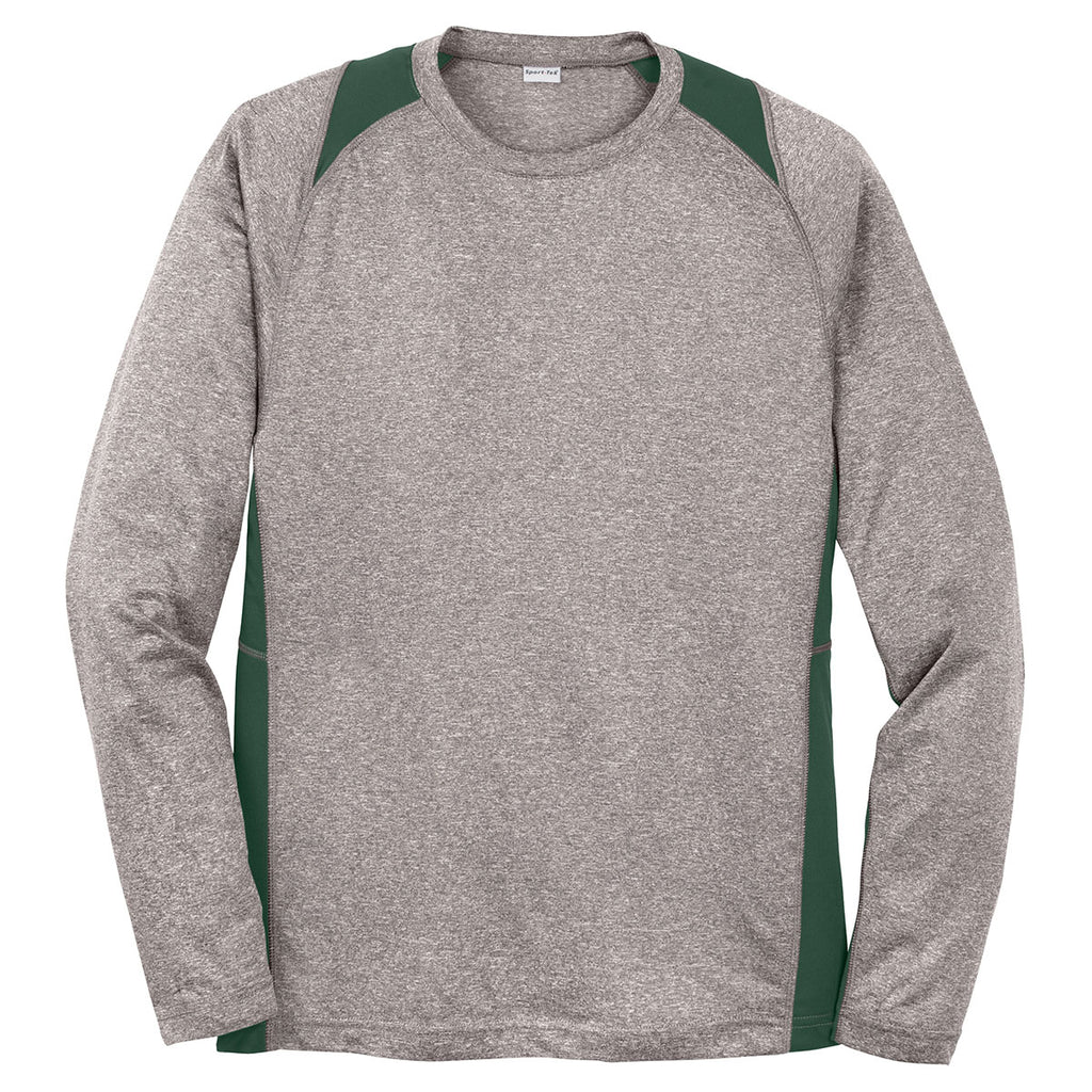 Sport-Tek Men's Vintage Heather/ Forest Green Long Sleeve Heather Colorblock Contender Tee