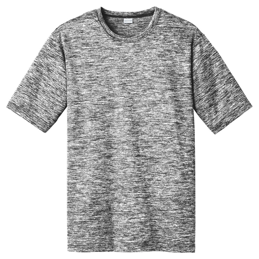 Do moisture laden t-shirts bog you down whenever you need to ramp up the competitive juices? Sport-Tek Men's Black Electric PosiCharge Electric Heather Tee contain moisture wicking technology that quickly evaporates perspiration the instant it forms on your skin. The result is a cooling of the skin that invigorates your body. Set-in sleeves allow for more arm movement, which comes in handy on the golf course and tennis court. The super soft fabric endures countless wash and dry cycles, without any of the colors fading. One-hundred percent rugged polyester interlock resists rips and tears. Attach your company logo to the t-shirts to spread the word about your brand.Corresponding Women's Style: Sport-Tek Women's Black Electric PosiCharge Electric Heather Sporty Tee