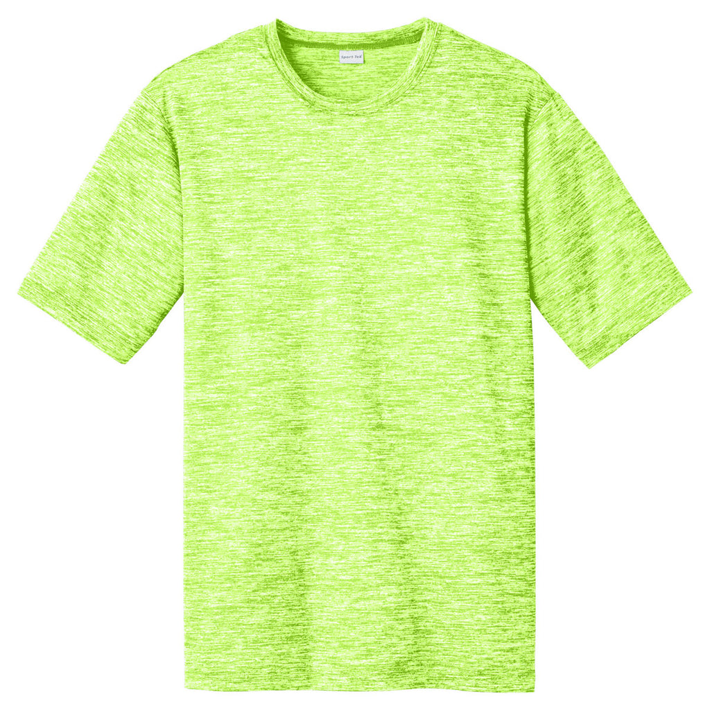 Do moisture laden t-shirts bog you down whenever you need to ramp up the competitive juices? Sport-Tek Men's Lime Shock Electric PosiCharge Electric Heather Tee contain moisture wicking technology that quickly evaporates perspiration the instant it forms on your skin. The result is a cooling of the skin that invigorates your body. Set-in sleeves allow for more arm movement, which comes in handy on the golf course and tennis court. The super soft fabric endures countless wash and dry cycles, without any of the colors fading. One-hundred percent rugged polyester interlock resists rips and tears. Attach your company logo to the t-shirts to spread the word about your brand.Corresponding Women's Style: Sport-Tek Women's Lime Shock Electric PosiCharge Electric Heather Sporty Tee