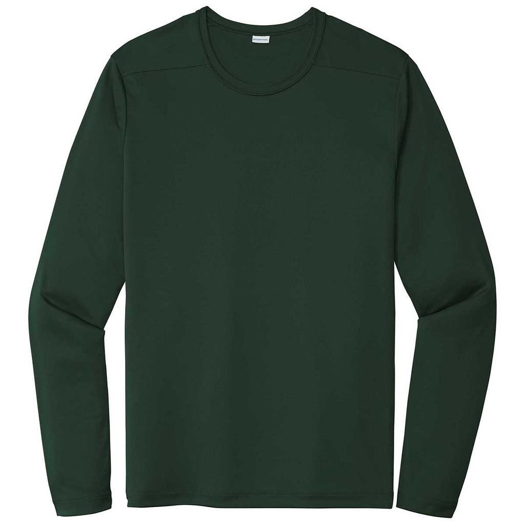 Be ready for the changing weather with the Sport-Tek Men's Forest Green Posi-UV Pro Long Sleeve Tee. Your company logo will stand out on this long sleeve tee complete with removable tag and set-in sleeves. Perfect for fall golf trips with a UPF rating of 50, this shirt will keep you cool with moisture wicking technology or warm on those cooler days with long sleeves. Add a screen print of your company design to use for team events or to give away at corporate events. Ideal for layering or wearing alone for nearly any occasion, this long sleeve tee is a must have.Highlights
