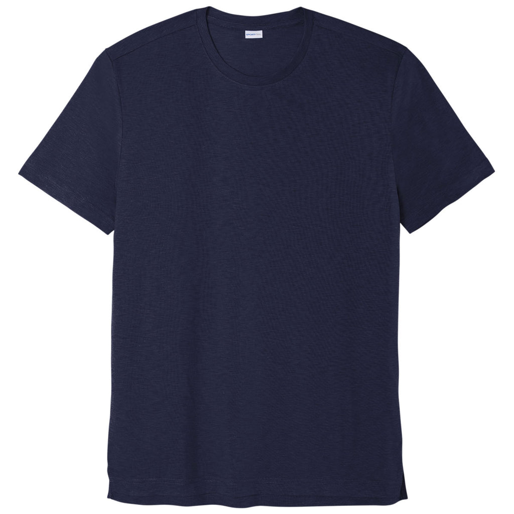 Design your screen print for the Sport-Tek Men's True Navy PosiCharge Strive Tee that was inspired by current streetwear. The elevated heathered tee is moisture wicking and comes in vibrant color options. The lightweight, short-sleeve tee offers cotton with PosiCharge technology with set0in sleeves and a tearaway label. Add a custom logo to create your own section of streetwear for your logoed apparel line or a company logo to use as employee apparel for those working in a trendy environment. Great for layering or wearing alone, this tee can go from home to an evening with friends in a heartbeat.Highlights