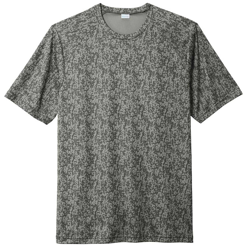 Sport-Tek Men's Grey Concrete PosiCharge Digi Camo Short Sleeve Tee