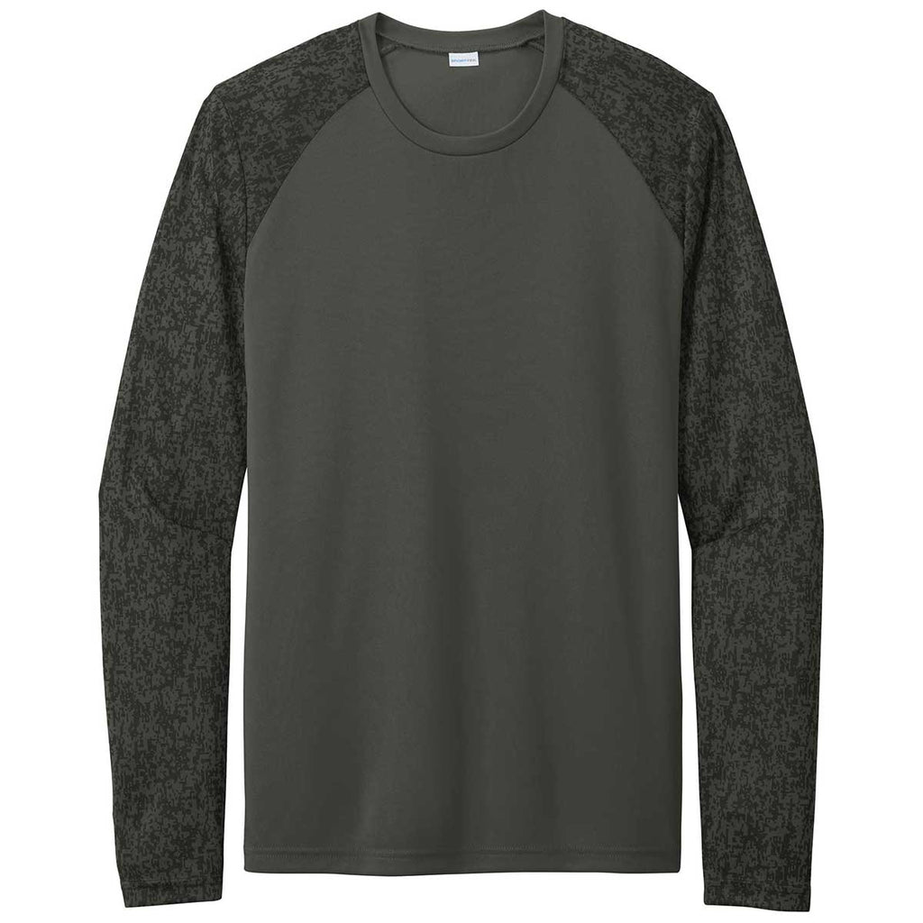 Sport-Tek Men's Black PosiCharge Digi Camo Long Sleeve Tee