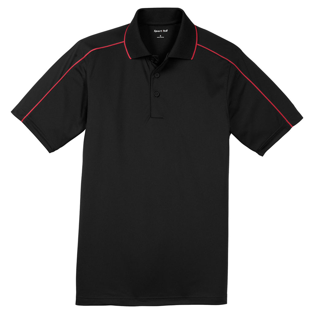 Sport-Tek Men's Black/True Red Micropique Sport-Wick Piped Polo