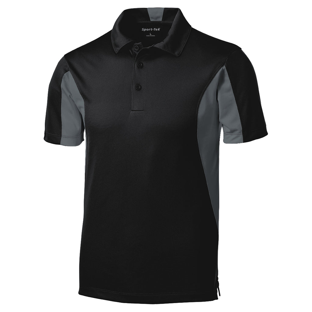 Sport-Tek Men's Black/ Iron Grey Side Blocked Micropique Sport-Wick Polo