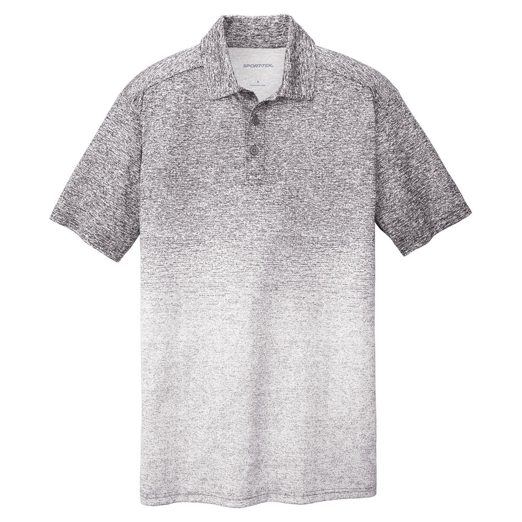 Designed with an allover sublimated print to create an innovative twist on traditional athletic colors, the company logoed Sport-Tek Men's White/Graphite Ombre Heather Polo sets the standard for versatile polos. Attach a custom logo on the large imprint area to leave a lasting positive impression on the potential customers you interact with at industry trade shows. Snag resistant to prevent tearing, the sleek polo includes a self-fabric collar and open hem sleeves. Side vents encourage the circulation of air to cool the body when the competition heats up. Moisture wicking technology keeps the skin comfortably dry all day long. Switch up the usual corporate apparel with this ombre polo from Sport-Tek.Highlights