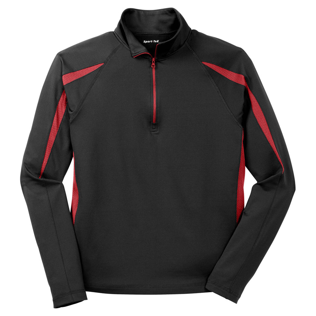 When the weather gets tough, so must you. That's the idea behind this Sport-Tek Men's Black/ True Red Sport-Wick Stretch 1/2-Zip Colorblock Pullover. Add your own custom embroidery to make this a piece of corporate apparel that anyone can enjoy. Layering is ideally suited to serve as your canvas, and this is an item that will work for you in the elements, not against.Highlights