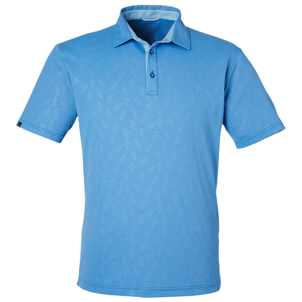 Show your custom style with the Swannies Golf Men's Blue Barrett Embossed Polo. The 100% REPREVE polyester is eco-friendly and ready to show off your logo. Perfect as gifts for corporate events with a three-button placket and collar stand, this polo is stylish enough for the office and made for the golf course.Highlights