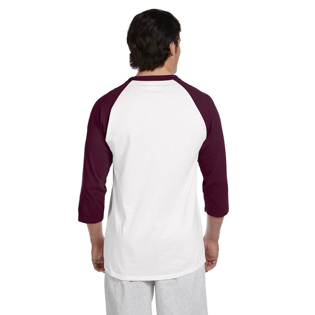 Want a T-shirt that will never go out of style? The classic design of the Champion Men's White/Maroon Baseball T-Shirt is comfortable and durable enough to wear all the time--and casual enough that you just might get away with doing exactly that. The Champion Men's White/Maroon Baseball T-Shirt is extremely lightweight and breathable. Made with 100% cotton, it has 3/4 length sleeves, double-needle stitching on the sleeves and bottom hem, and a logo on the left sleeve.