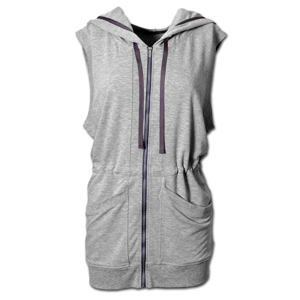 When your employees or customers go for their morning run, wouldn't you like them to be seen with your logo on their BAW Women's Heather Grey Tunic Vest? Your corporate logo on this stylish vest with a hood will let all who see it know you are concerned with health and warmth. Two front pockets keep the wearer's hands cozy. This vest has a relaxed fit and is ready for you to attach your own custom logo to the front.Highlights