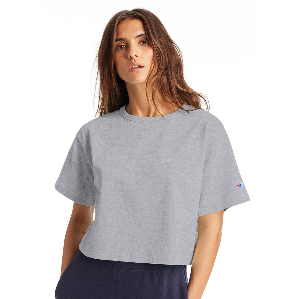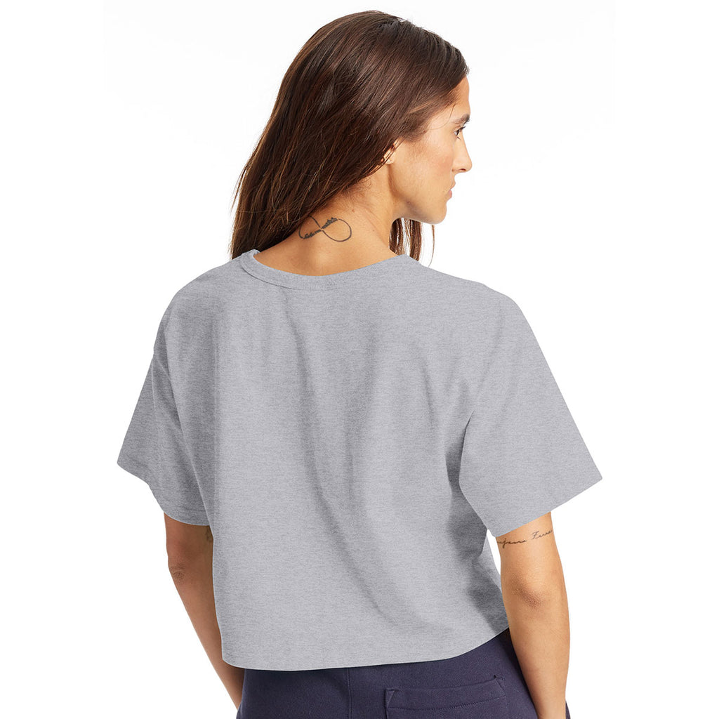 Champion Women's Oxford Grey Cropped Reverse Weave T-Shirt