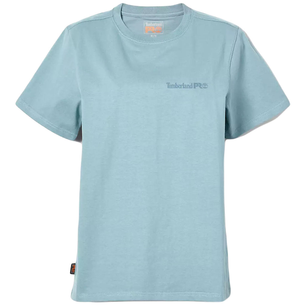 Timberland Women's Smoke Blue Cotton Core T-Shirt with embroidery is a fun way to create a simple look for work, play, or your brand. The midweight, feminine tee fits well with room to move for enhanced performance. Great for a day at the gym, a day working outdoors, or anything you choose. Place an order today.