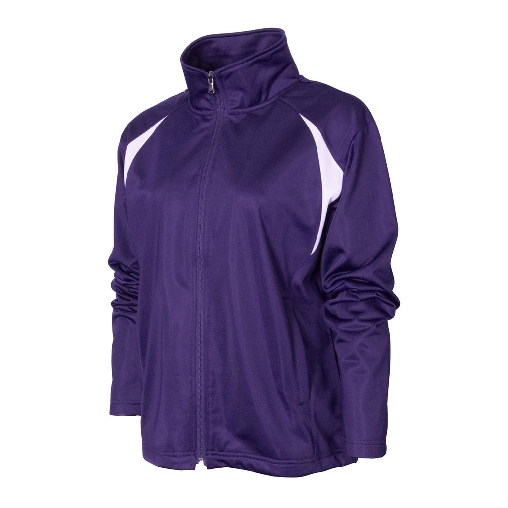 Women appreciate a striking jacket that is chic and colorful. When you have your custom logo on the BAW Women's Purple/White Colorblock Tricot Jacket it will certainly draw attention. This colorblock jacket made from brushed tricot. You have accent trim on the upper chest near the sleeves and also across the back yoke. This is a moisture management fabric with a full front zipper so you can protect your neck area. The jacket has slash pockets, and an open bottom with drawstring and cord lock. Available sizes are S to 3X.Corresponding Men's Style: BAW Men's Purple/White Colorblock Tricot Jacket