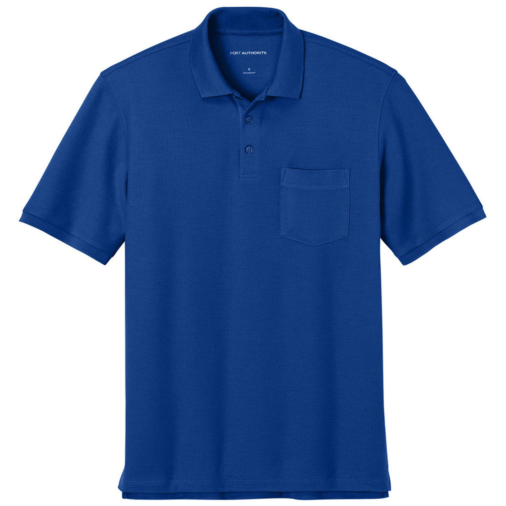 Designed with a tall fit, the Port Authority Men's True Royal Tall Wearever Signature Pique Pocket Polo ensures comfort and style for every wearer. Its breathable pique fabric offers structure and polish, making it suitable for business or casual settings. With custom embroidery, it becomes an essential piece of corporate apparel that balances practicality with professionalism.Highlights