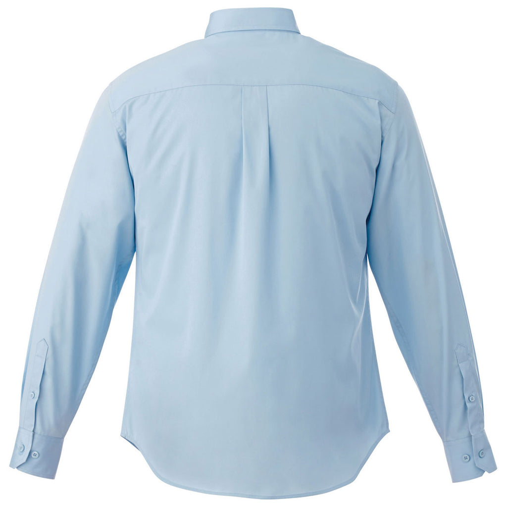 The Elevate Men's Frost Blue Wilshire Long Sleeve Shirt with your custom logo on it can be perfect as part of a work uniform or as a gift for your loyal employees. It features a left-chest pocket and center-back box pleat. This classic shirt will give your employees a stylish and sophisticated look. They can wear it to work or when they are having a dinner in with their friends and family. It comes in a variety of colors, so choose the one which suits your company the best. This high-quality item will serve your employees for years to come.Corresponding Women's Style: Elevate Women's Frost Blue Wilshire Long Sleeve Shirt