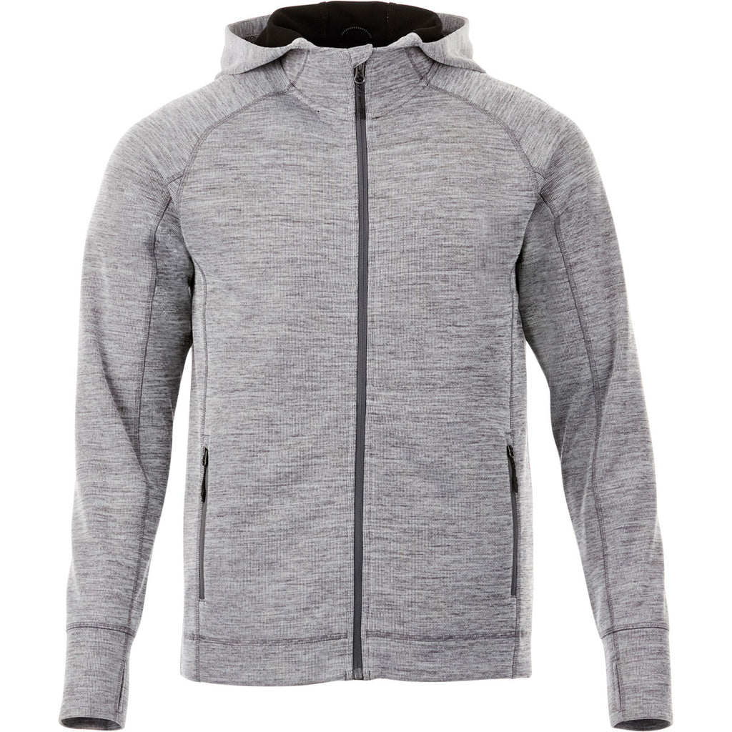 Who doesn't love a hoody? The Elevate Men's Heather Charcoal Odell Knit Zip Hoody is no exception. Perfectly priced for the moisture wicking finish and complete with sleeve cuffs, thumb exits, and interior earbud guide and exit port, this hoody has it all. Add a bit more with a custom logo to show off during cold weather jogs or outdoor activities. Available in maroon, invictus, and charcoal heather or black, this polyester sweater double knit is full zip for easy on and off. A great corporate gift or something to use as employee apparel the full zip hoody goes from the gym to the office with ease. Design your logo and order today!