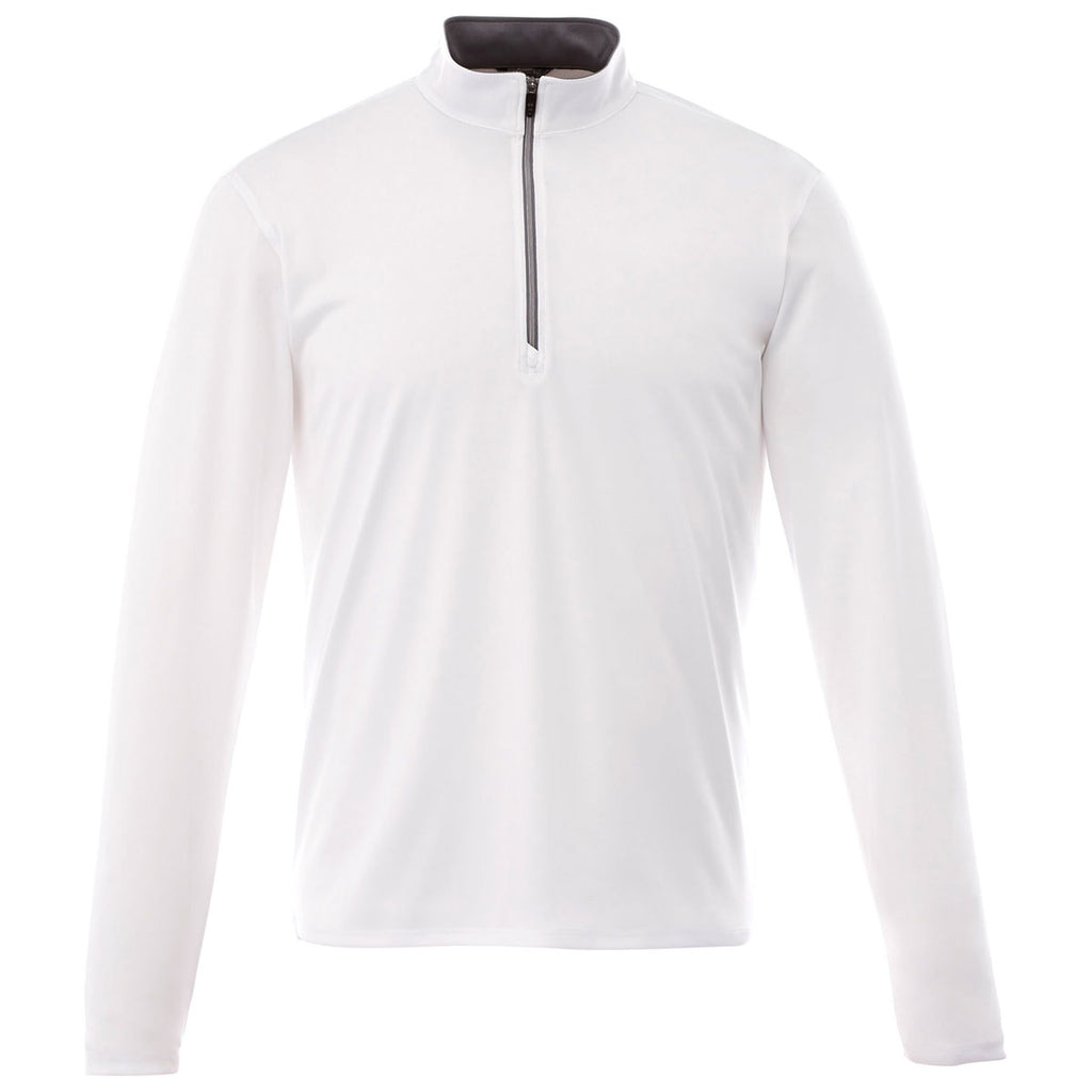 The Elevate Men's White Vega Tech Quarter Zip sporty versatile pullover is one of those pullovers for universal use which makes it a good choice for branding with your custom logo. It is a kind of pullover that is practical for work as well as for different daily activities in the city. It is made with a breathable, lightweight moisture wicking fabric and also offers UV protection and resists snagging. With your custom company logo on it makes a perfect choice for a gift for your company employees for any occasion. Because of its universality, this kind of wardrobe item could be your employees' favorite one and they will gladly wear it anywhere.Corresponding Women's Style:Elevate Women's White Vega Tech Half Zip