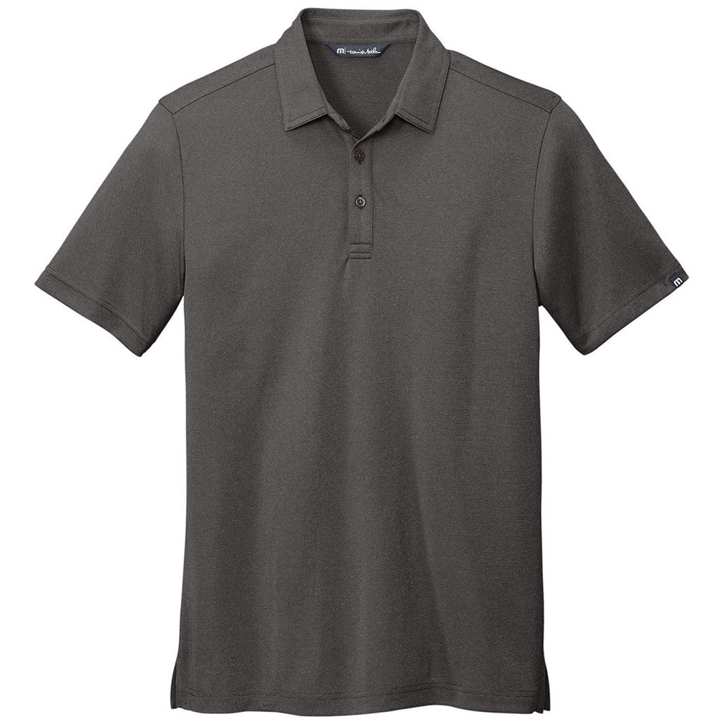Design your embroidery for the custom TravisMathew Men's Quiet Shade Grey/Black Coto Performance Polo for a look to add to your wardrobe or sale as a unique product in your line. This classic polo styling is made of 100% polyester for a lightweight look and feel that can go from the office to the driving range and then out with friends. Made with four way stretch, quick drying technology, and wrinkle resistance, this branded TravisMathew performance polo is a true must have for the professional that likes to relax and unwind in the evenings while still looking great. A self-fabric collar and open hem sleeves allow you to dress this polo up or down as needed.
