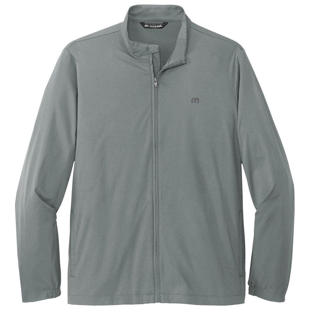 Choose your embroidery for the TravisMathew Men's Quiet Shade Grey Heather Surfside Full-Zip Jacket for a custom look that easily goes from the golf course to the office. Made of a lightweight nylon, polyester, and spandex blend this jacket is made for comfort and convenience. Created with 4-way stretch for the ultimate in comfort with open hand pockets and cuffs, this jacket can serve as part of employee apparel with a company logo or as a gift for lucky receivers. Easy to layer with a full zip front with reverse coil zipper, this is a must have for everyone from the busy exec to the low man in the corporation.