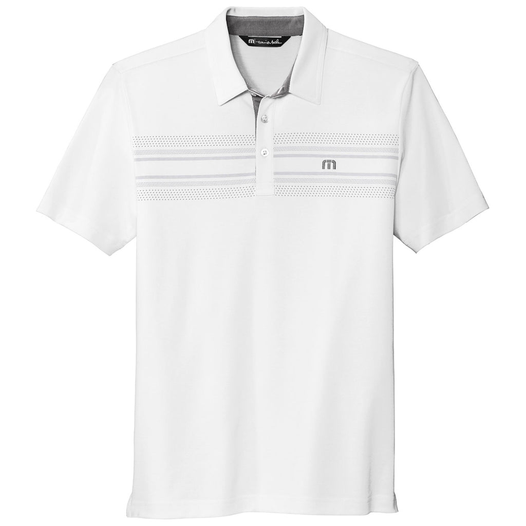 TravisMathew Men's White Monterey Chest Stripe Polo