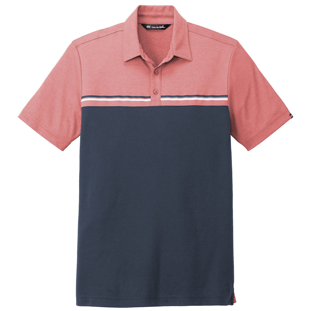 TravisMathew Men's Cardinal Heather/Blue Nights Sunset Blocked Polo
