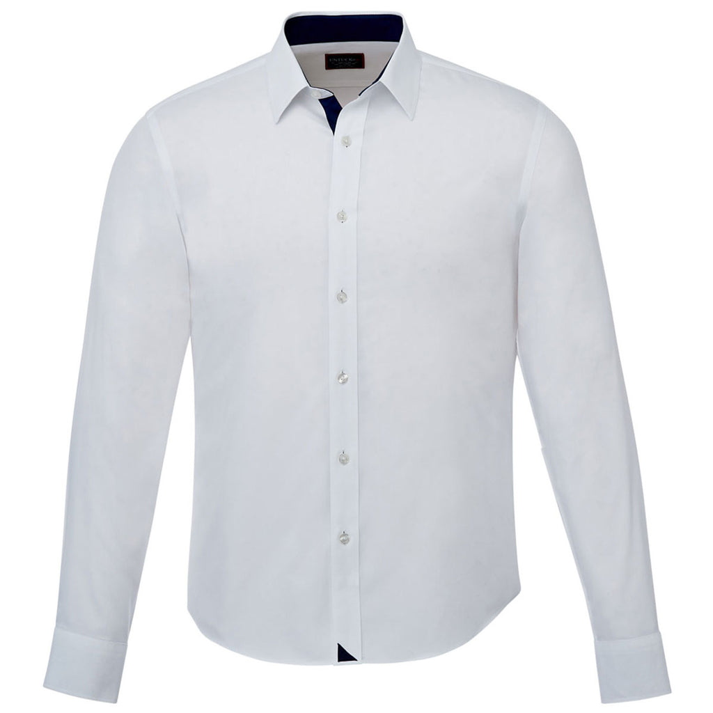 A contemporary point of view makes the UNTUCKit Men's White Las Cases Special Wrinkle-Free Long Sleeve Shirt a must-have for modern brands. The perfect piece for showcasing your company's custom logo, it is made from a wrinkle-free cotton and features contrast fabric for added visual impact.
