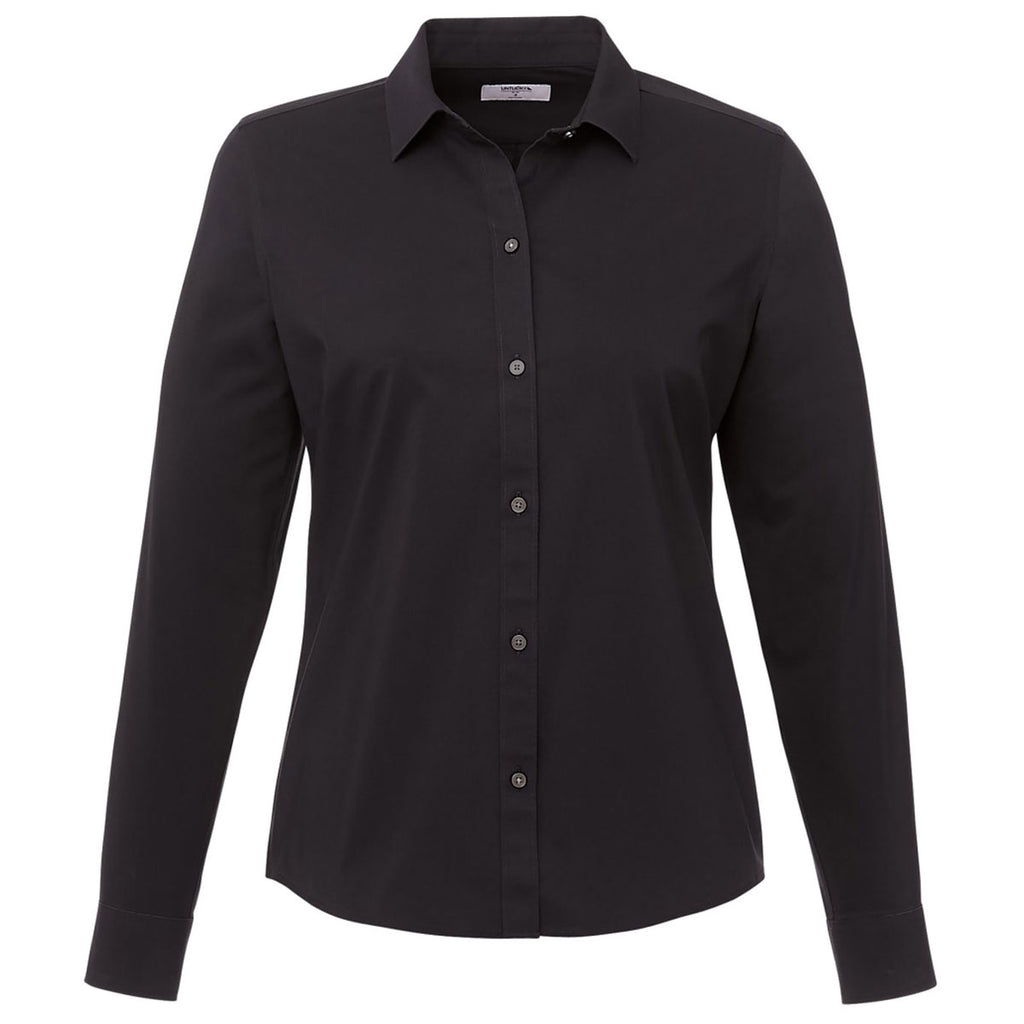Your company's custom logo will always make a professional statement when it's featured on the front of this UNTUCKit Women's Black Bella Long Sleeve Shirt. Crafted from a stylish stretch cotton that will look impeccable even in unpredictable conditions, it's a uniform that the ladies on your team will love to wear.Highlights