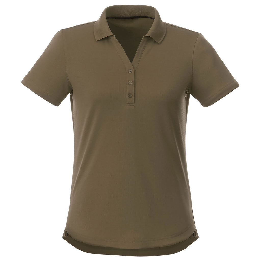 The custom logo Elevate Women's Loden Otis Short Sleeve Polo offers stylish comfort and a fashionable fit. Available in nine different colors, there is certain to be a color which goes perfectly with your company logo. Features of this double knit polo shirt include breathable fabric with moisture wicking capabilities, three button closures, snag resistant fabric and built-in UV protection (UPF 40+). The shaped seams and tapered waist make this women's polo shirt a must-purchase item. Hand this attractive logoed polo shirt out at corporate events, such as trade shows and recruiting events, to please the recipients and to get your company name out to the public.Corresponding Men's Style: Elevate Men's Loden Otis Short Sleeve Polo