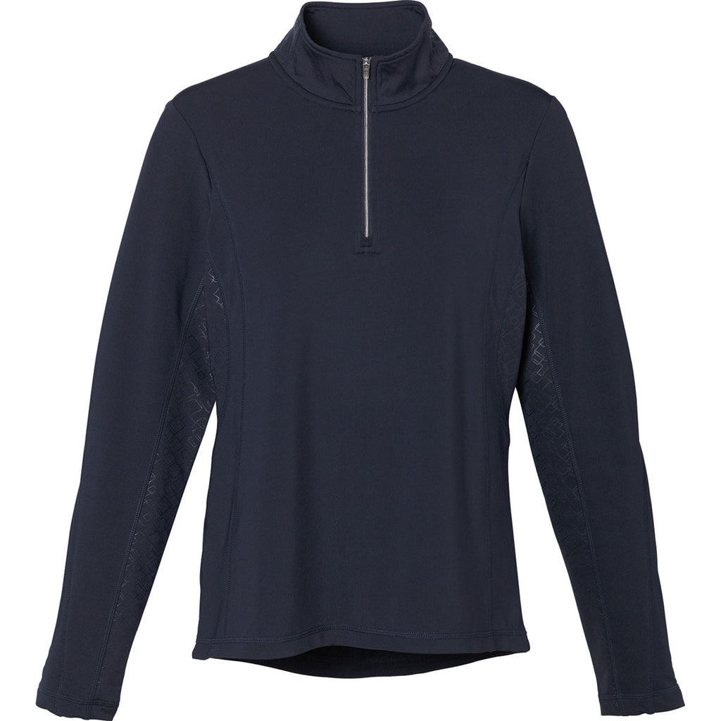 You want to head outdoors, but the forecast isn't entirely agreeable. You want the convenience of a T-shirt, but the comfort and style of something a little more sophisticated. The solution: this Elevate Women's Navy Caltech Knit Quarter Zip. Not only does it function as a fantastic exterior piece against the cooler weather, but it will help keep you feeling comfortable and cozy even if you're just wearing it around the house. Add your custom logo to this piece and you'll be able to fashion it into a branding item for events, promotions, gifts, and more.Corresponding Men's Style:Elevate Men's Navy Caltech Knit Quarter Zip
