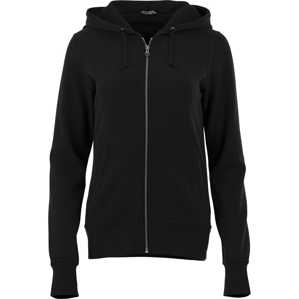 Corporate promotion in a winter means its time for hoodies in warm colors that help to pull the wearer's look together in an effortless manner. Custom logoed hoodies are a popular-priced medium to advertise your company or business because they are staple pieces of a winter wardrobe. Designed to inject energy into workout casual repertoire with all the warmth and without the bulk, this Elevate Women's Black Cypress Fleece Zip Hoody is crafted from a comfy cotton-poly blend. It features exclusive branding opportunities, including an area to add your logo inside the back yoke and tear-away label, allowing you to create a special custom giveaway gift. Create a fantastic winter giveaway and spread awareness of your brand by customizing this hoodie with your company's logo.Corresponding Men's Style:Elevate Men's Black Cypress Fleece Zip Hoody