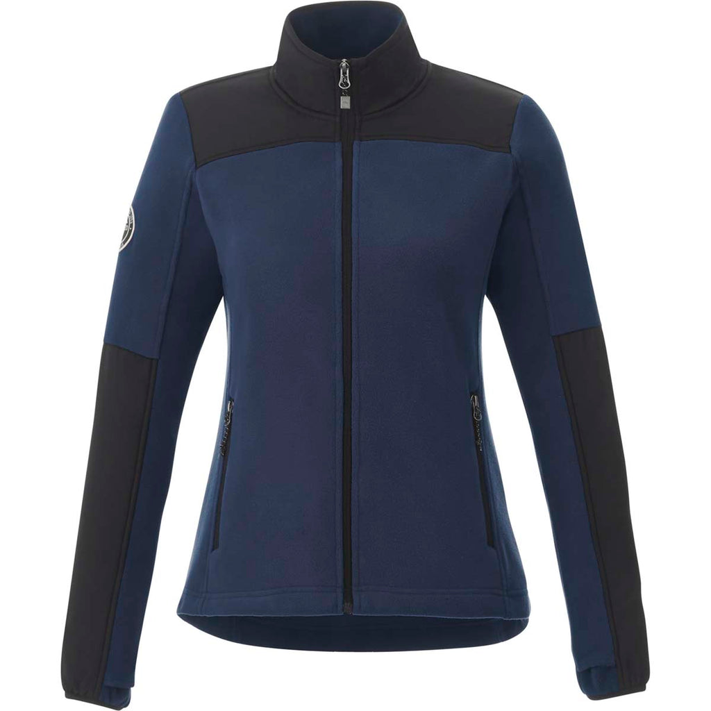 Get back to your corporate apparel roots by ordering one of the most stylish business jackets available, the Roots73 Women's Atlantic Navy/Black Briggspoint Jacket. The versatile jacket contains lightweight and highly durable 100% polyester anti-pill microfleece that resists the types of rips and tears experienced by other styles of jackets. Add a custom logo on the embroidered area to make a connection with potential customers at sales conferences. Shaped seams and a tapered waist create a flattering fit for all occasions. Use the interior media pocket to enjoy quick access to important handheld electronic devices.