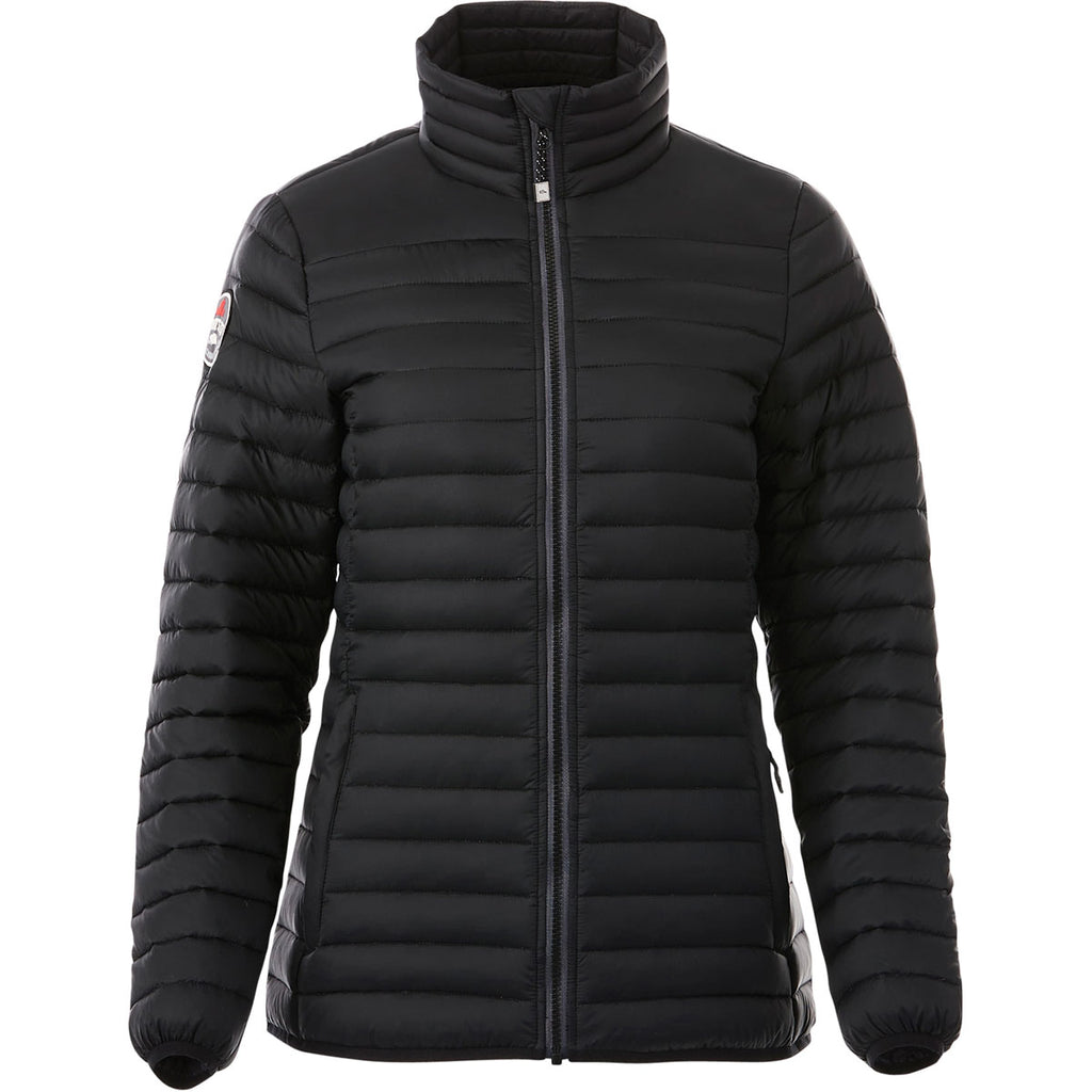 Roots73 Women's Black Beechriver Down Jacket offers lightweight warmth mixed with comfort as a way to showcase your custom logo. Perfect for a cold weather adventure or just to wear to and from the office, this partial channel quilted, insulated jacket can be ordered with your corporate embroidery on the left chest or sleeve. Imagine offering this as a corporate gift for those who help make your company great. The water repellant coating adds to the convenience of this down apparel that can easily be stored and carried in the included stuff sack. Order as employee apparel, a holiday gift, or an everyday use.