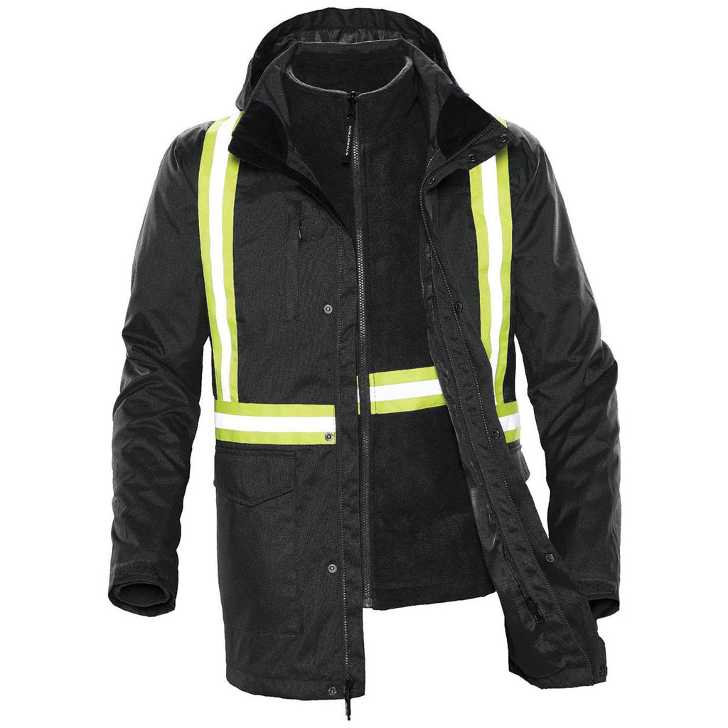 The Stormtech Men's Black Vortex HD 3-IN-1 Reflective System Parka is the employee apparel uniform addition you need to protect your team in the coldest of temperatures. With room for customer corporate logo embroidery and high visibility taping on both the shell and inner liner, this jacket is perfect for offering safety and brand integrity. The waterproof shell can be worn with, or without, the anti-pill polar fleece liner, offering temperature control all the way down to -4 Degree F. Finished with plenty of storage pockets, this jacket is the corporate gift your team would love to receive.Highlights