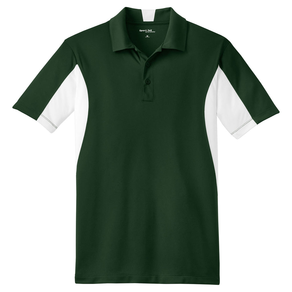 Sport-Tek Men's Forest Green/ White Tall Side Blocked Micropique Sport-Wick Polo