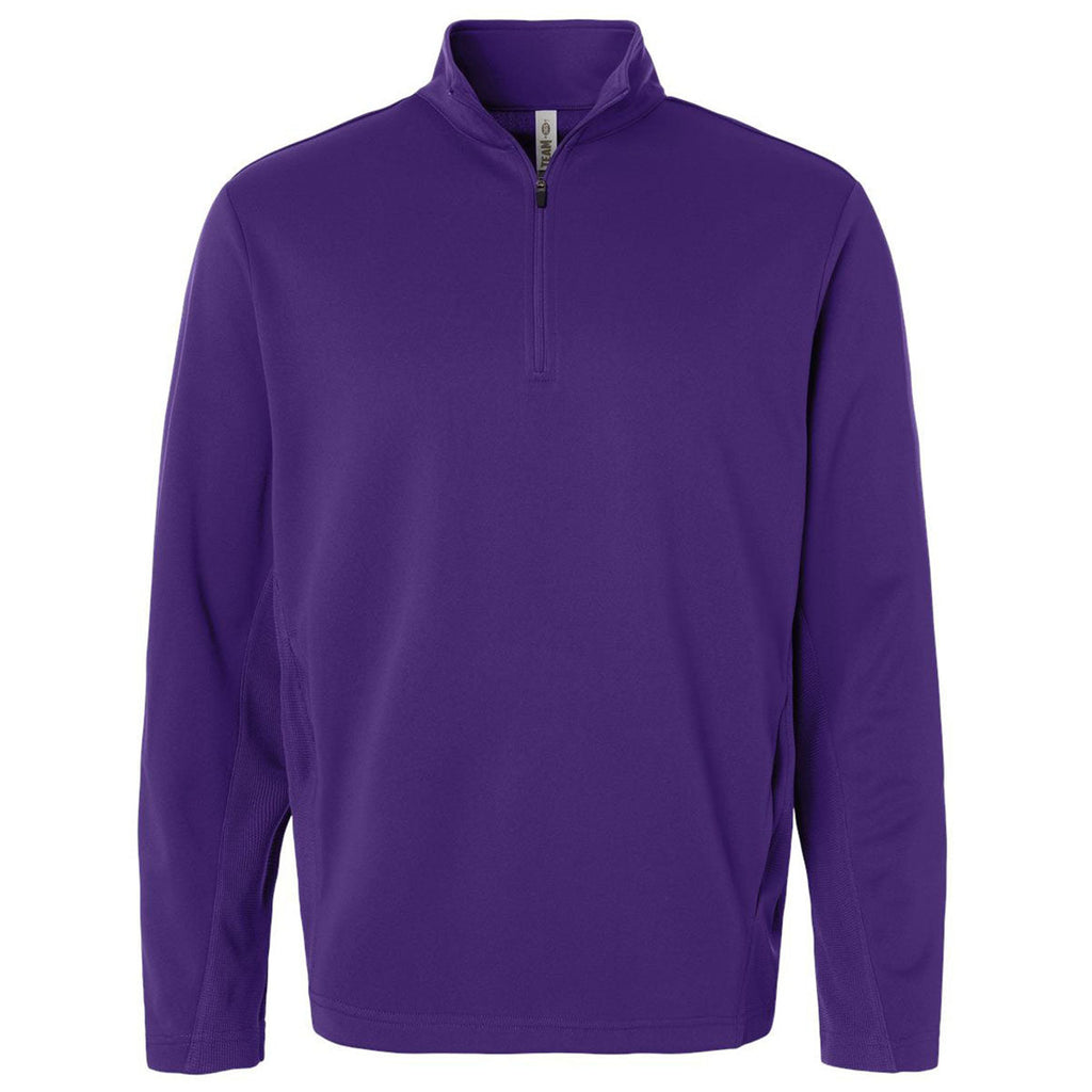 The Team 365 Unisex Sport Purple Squad Cadet Quarter-Zip Tech Fleece Pullover combines lightweight warmth with a polished athletic look, ideal for custom or corporate branding. Its cadet collar and tech fleece construction offer comfort and durability for practices or work environments. A smooth surface enhances logo clarity, while its versatile style supports both team wear and retail use.Highlights