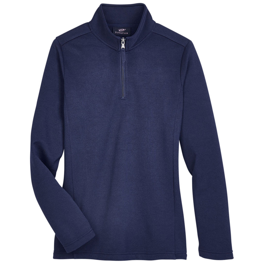 UltraClub Women's Navy Coastal Pique Fleece Quarter-Zip