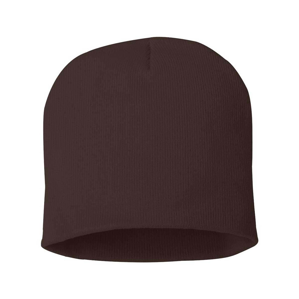 Keep it basic with a custom Sportsman Brown 8" Knit Beanie in a huge variety of colors. Made of 100% acrylic knit, this beanie is a one size fits most design that can be embroidered with your company logo or design of choice. Choose a safety yellow as headwear for those who have to be outdoors in dangerous areas or a basic black to allow your corporate embroidery to stand out when it is worn to sporting events or as part of employee apparel. Create a look that everyone will want to mimic as you bring the beanie to the fashion front.Highlights